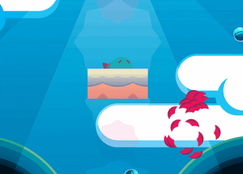 Shooting projectiles uses stamina; stamina recovers over time. The player's color turns blue when they are at full stamina. Projectiles shot will first travel towards, then away from the cursor.